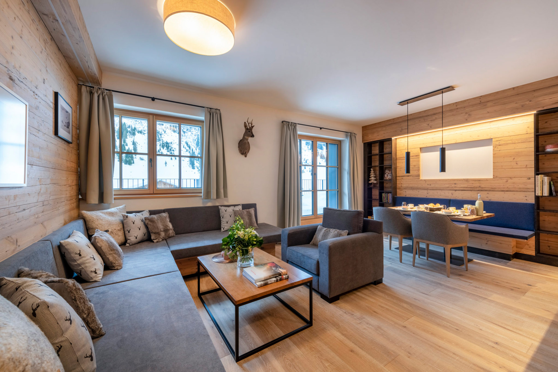 Part of the Brunnenhof Residence, Apartment Brunnenhof 1 offers a prime location for a luxury ski holiday in Lech, with easy access to both the slopes and resort centre. The closest ski lift, the Schlosskopf chairlift, is just a six-minute walk or two-minute drive away, with the Schlegelkopfbahn chairlifts, beginners' slopes, and Rüfikopfbahn gondolas also within easy reach. A ski bus stop directly outside the residence provides convenient transport. The heart of Lech, featuring a variety of bars, restaurants, and shops, is just a 10-minute walk or three-minute drive away.