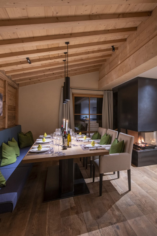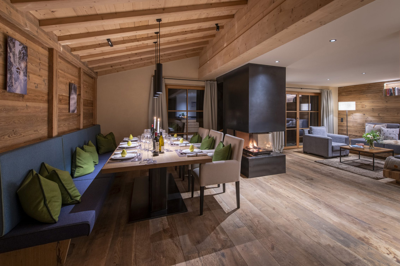 Brunnenhof 13 is a luxurious four-bedroom apartment with stylish open-plan living and a shared spa.