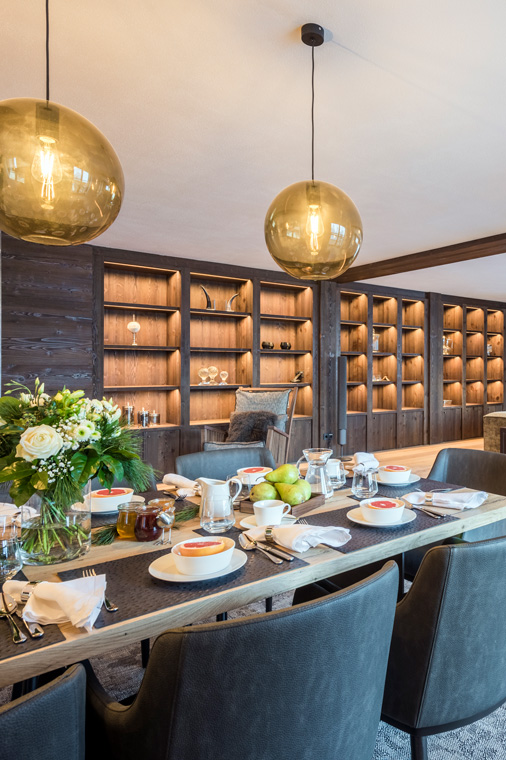 Through the floor-to-ceiling doors of the living area you have magnificent views of Lech and direct access to the terrace.