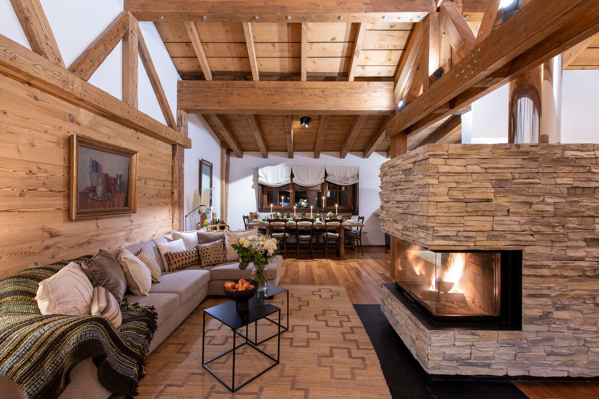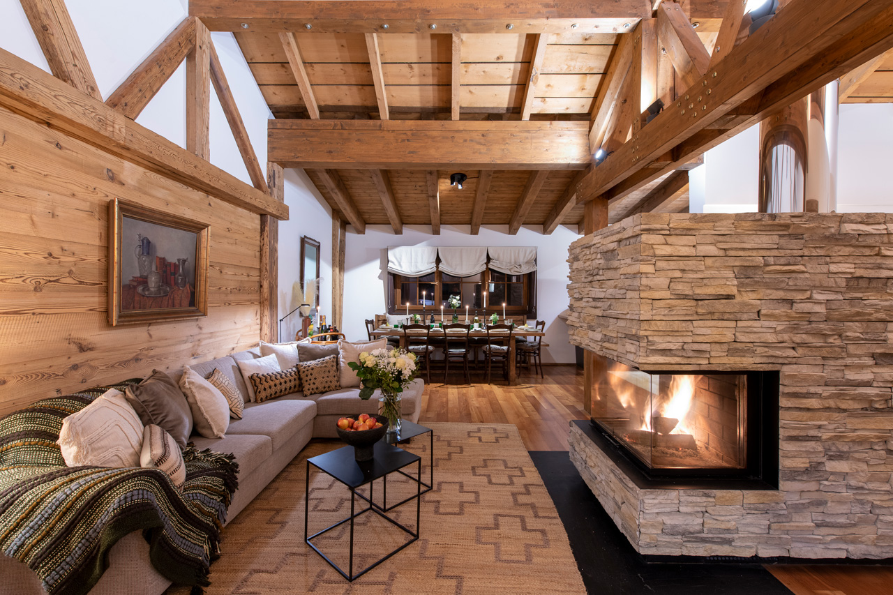 Located a three-minute drive from the main ski lifts and a 15-minute walk from the centre of the resort, Kikombe Lodge provides a convenient base in St Anton for a luxury ski holiday. Set over three floors, this loft-style apartment blends traditional elements with contemporary furnishings to create a cosy yet characterful interior.