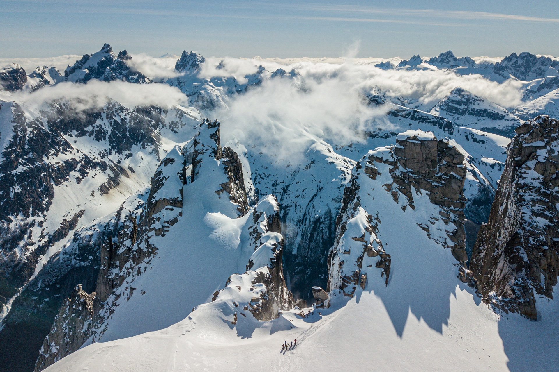 Patagonia’s heli-skiing terrain is vast and varied, offering everything from wide-open powder fields to steep couloirs and narrow chutes. The elevation of the Andes, combined with the region’s coastal proximity, creates a snowpack that is both deep and light — perfect for carving turns down untouched slopes. The skiing season typically runs from June to October, with July and August being the prime months for powder.