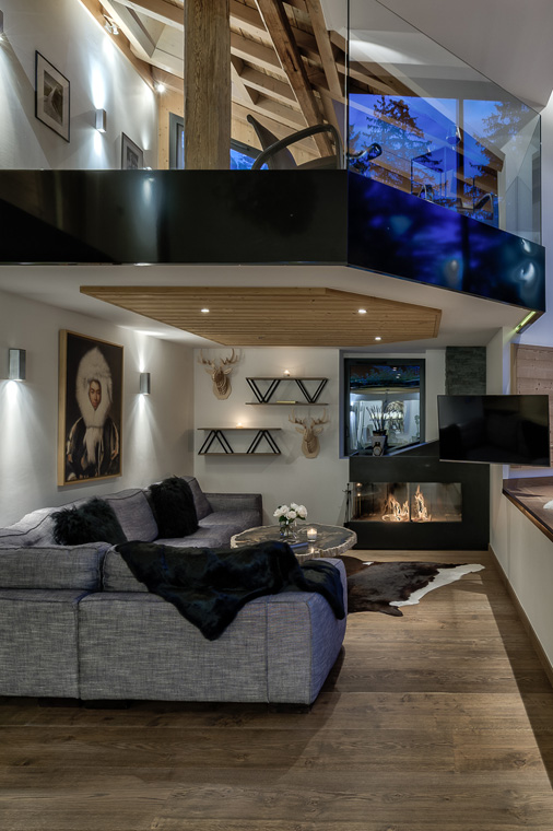 Chalet Black Diamond can accommodate up to eight guests across four en-suite bedrooms. There are two double bedrooms and a further two double bedrooms which can be configured as twin rooms. On the upper level is an office area where you can take time out with a good book, enjoy the views through panoramic windows or catch up on work.