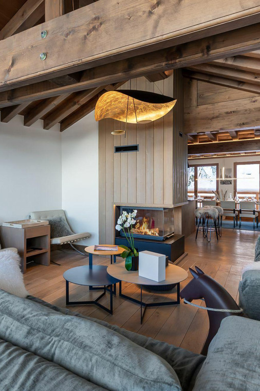 Set over four floors, the chalet blends contemporary and traditional decor to create a convivial ambience in which to relax. A spacious open-plan living area is located on the second floor with access to balconies at either end.