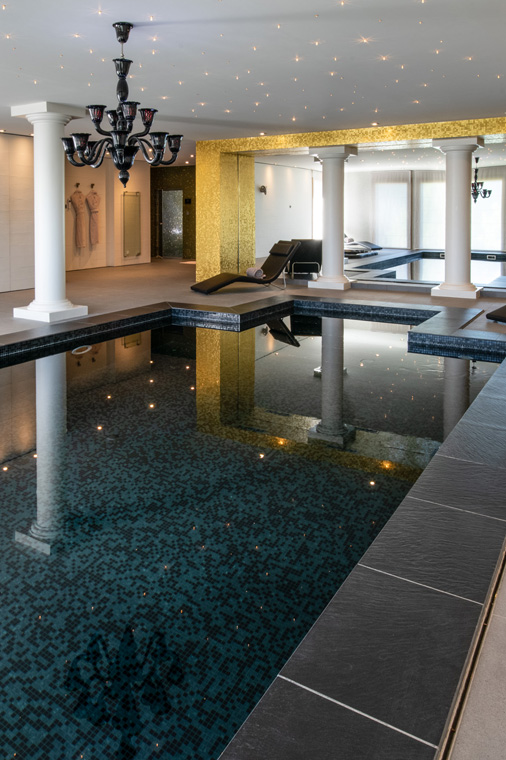 For indoor relaxation and entertainment, there is no better place than the Romanesque-style wellness area on the ground floor. Facilities include an indoor swimming pool, Jacuzzi, hammam and a sauna.