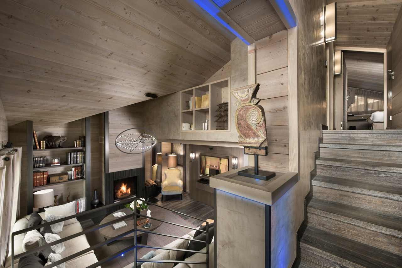 This impressive 210 m² duplex apartment, located on the second floor of the Grandes Alpes Private Hotel, consists of a vast open plan lounge area overlooking the valley and the charming centre of the village of Courchevel 1850.