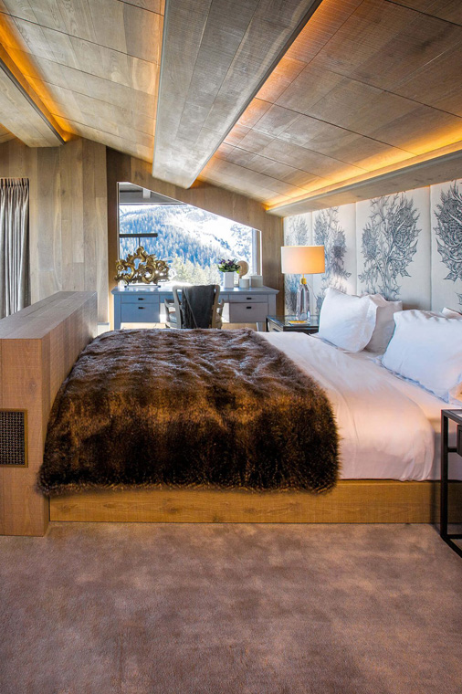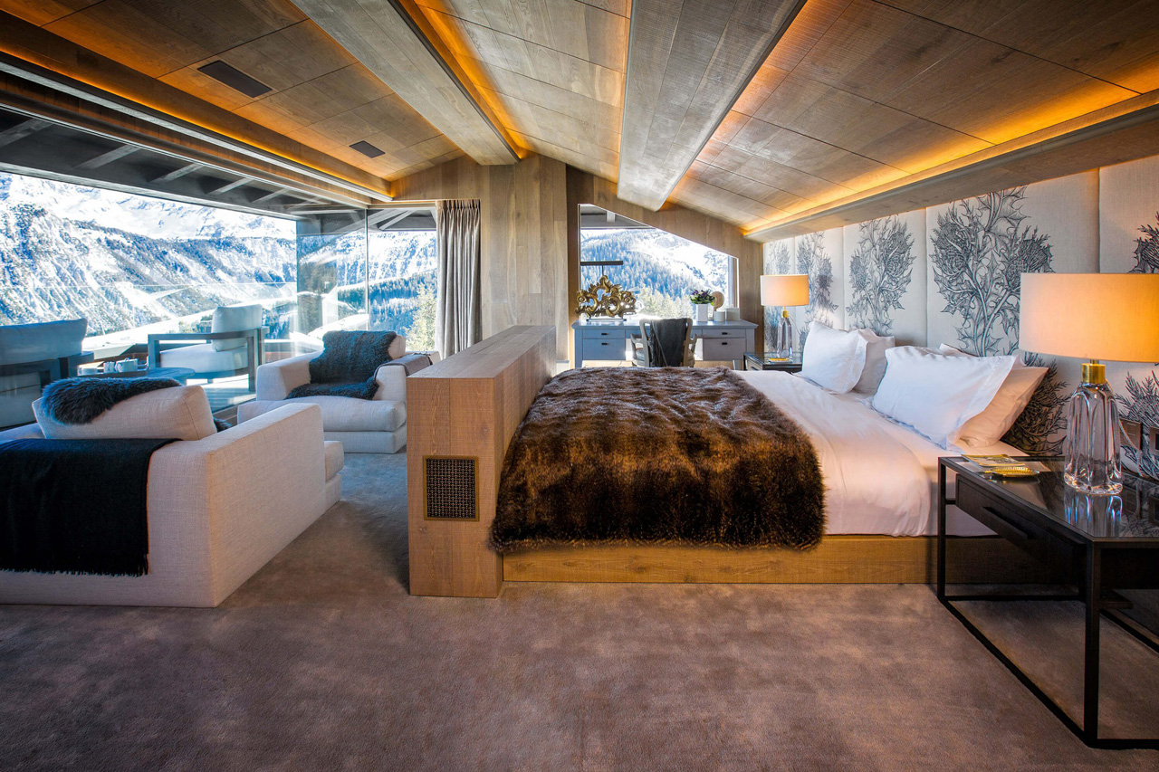 This 650 square metre chalet, spread across five floors and equipped with the added convenience of a lift, offers an array of entertainment options. For lively post-dinner gatherings, head to the subterranean music bar. If a more relaxed evening is your style, unwind in the state-of-the-art cinema room or indulge in the spa and wellness area, featuring a swimming pool, hot tub, and massage room.