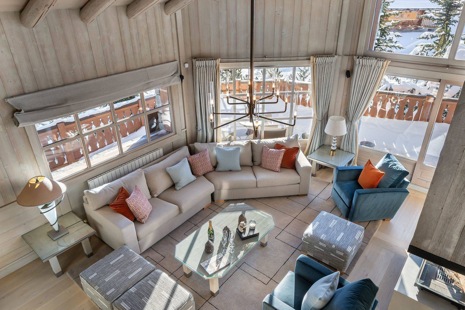 Entering this delightful wood and stone chalet, you immediately feel at home in the open living room with its beautiful wood-burning fireplace, dining area and fully-equipped kitchen. The chalet is beautifully furnished and finished with polished marble and oak floors as well as sophisticated modern furniture.