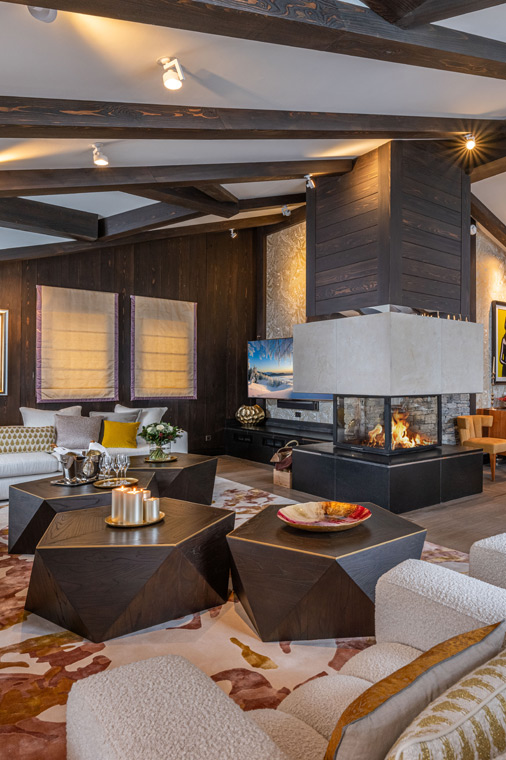 Chalet Le Coquelicot has six en-suite bedrooms all with beautifully crafted marble bathrooms. The large master bedroom suite has been designed with comfort and lavishness in mind. The en-suite bathroom has a freestanding bath and walk-in shower. Five more double en-suite bedrooms have stylish colour palettes combined with custom-made materials including textured stones, mosaics and coloured ceramics.