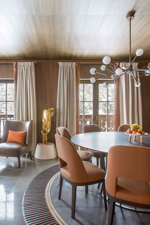 Le Chalet Cheval Blanc’s interiors combine authentic materials with original art pieces. The living areas are all about relaxing together.