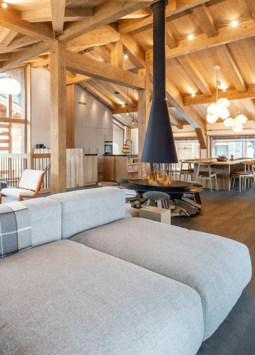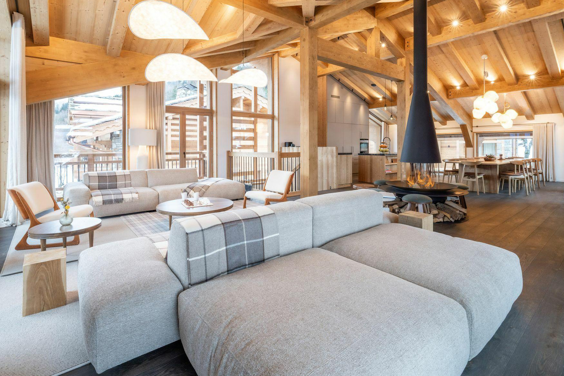Spanning four levels, Chalet Irbis boasts a stunning top-floor living area, where bay windows flood the space with natural light and open to a large balcony, offering panoramic views of the Dent du Villard. Whether you're unwinding, cooking or sharing a meal, this space provides the perfect setting for any occasion.
