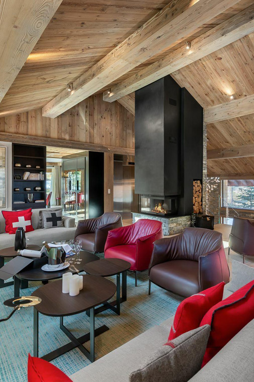 Chalet Les Sorbiers is a vision of modern elegance with a stylish open-plan living area and commanding mountain views.