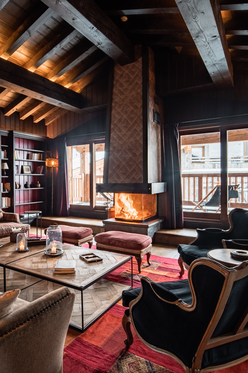 Built from reclaimed wood, the living areas of the chalet are truly impressive, with colourful furnishings and materials, subdued lighting and vaulted ceilings.