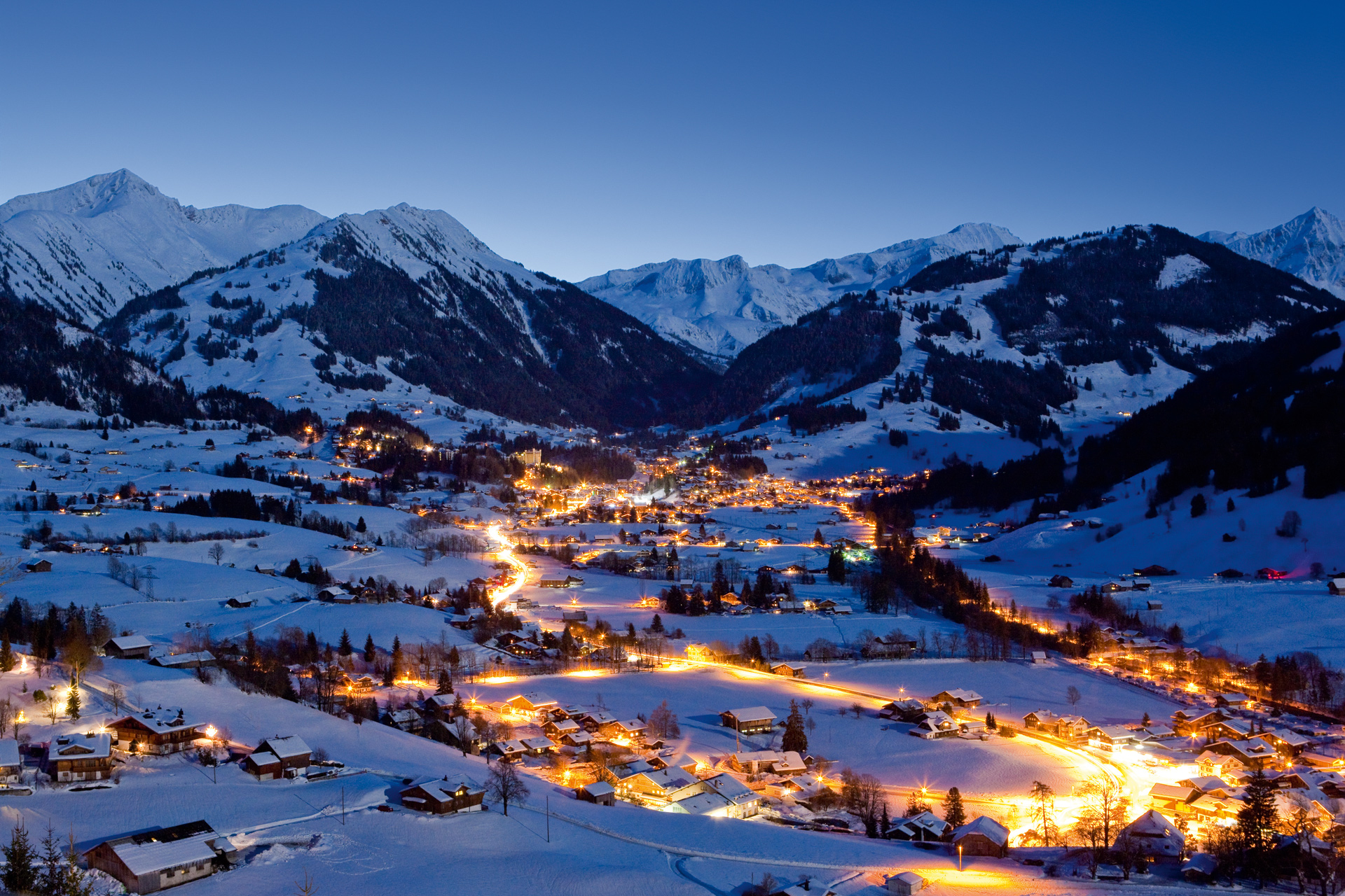 The pedestrianised village is lined with historic wooden buildings and designer boutiques, while the surrounding mountains offer 200 km of varied pistes suitable for all abilities. Home to the only glacier ski area in the Bernese Oberland, the season here stretches well into spring.