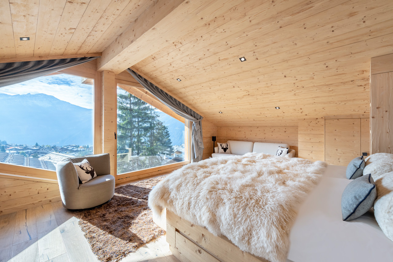 Bedroom one at Chalet Roselle in Verbier