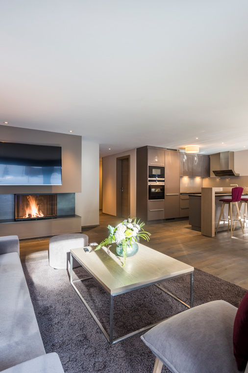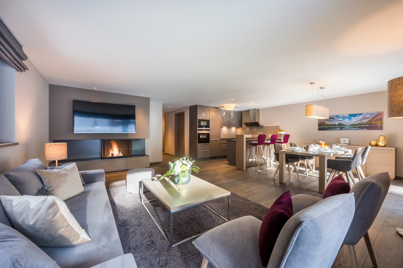 With two bedrooms accommodating four people, the apartment is ideal for a family looking for stylish accommodation in the centre of Zermatt.