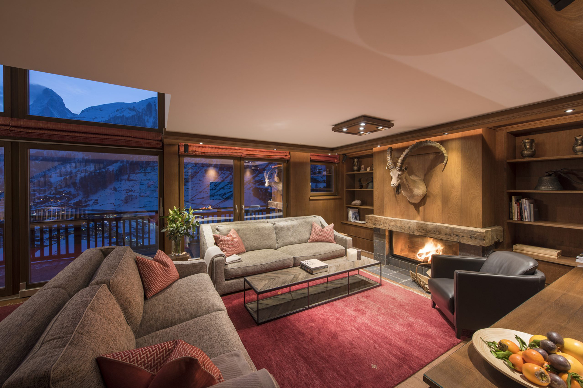 • The open-plan living area is bright and airy, with sweeping views over Zermatt.